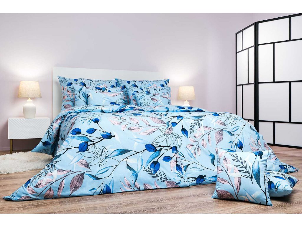 Luxusní ložní prádlo Milaya modrá s moderním přírodním motivem v modrých a pudrových tónech na světle modrém podkladu přináší do ložnice eleganci a svěžest. Nejlépe vynikne v kombinaci s prostěradlem v barvě královsky modré, denim, banán, bílé, béžové nebo tmavě šedé. Vyrobeno v České republice firmou DADKA VRACOV.