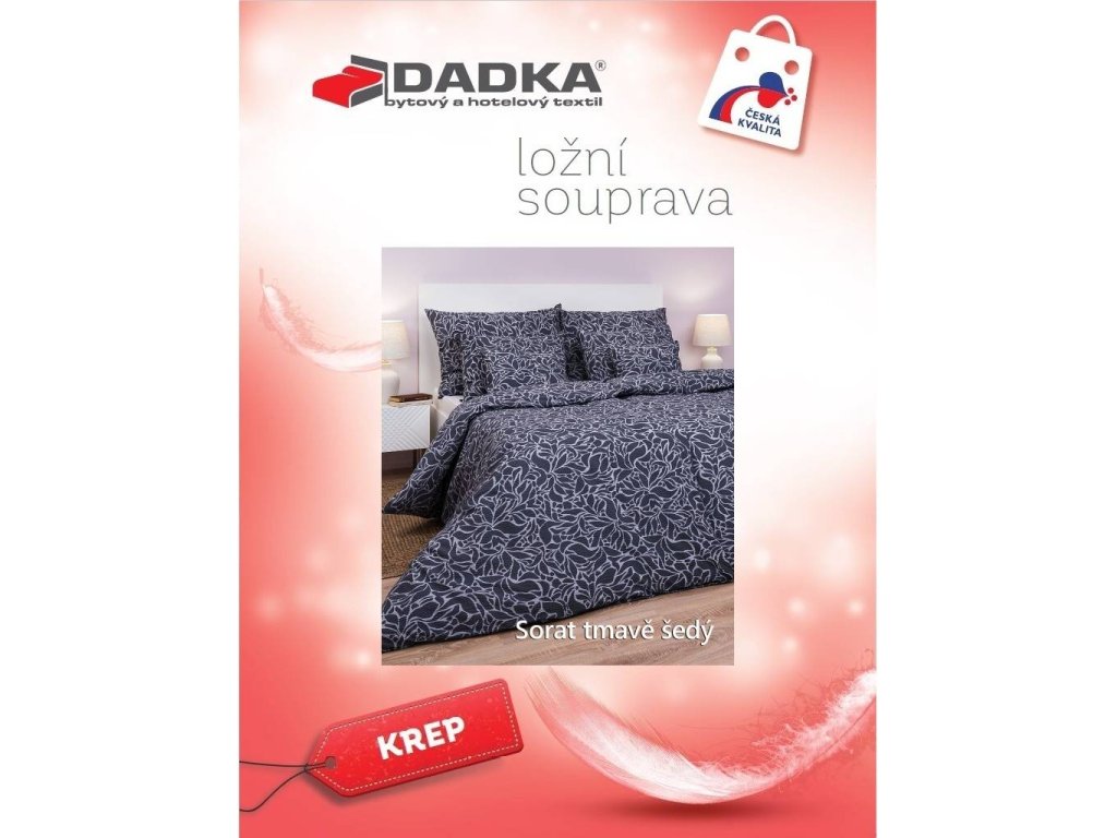 Stylové krepové povlečení Sorat tmavě šedý s decentním vzorem v tmavě šedé barvě přináší do ložnice elegantní a klidnou atmosféru. Skvěle ladí s prostěradlem v barvě banán, tmavě šedá, šedá, stříbrná nebo bílá. Vyrobeno v České republice firmou DADKA VRACOV.