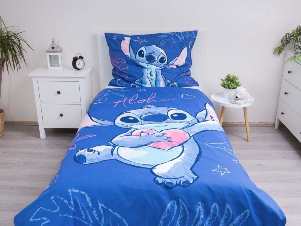 Rozzářete dětský pokojíček s povlečením Lilo a Stitch Aloha! Veselý motiv, kvalitní bavlna a pohodlné zapínání na zip – ideální volba pro malé snílky. Rozměr povlečení je 140x200, 70x90 cm.
