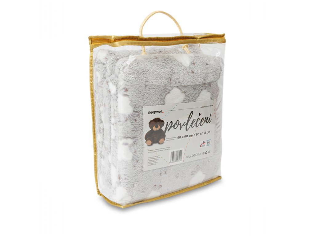 Povlečení mikroflanel do postýlky Ovečky světle šedé 90x135, 40x60 cm