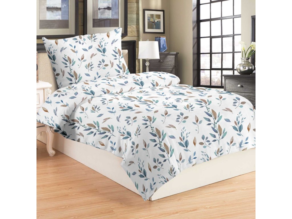 Ložní povlečení Šedomodré větvičky. Mikroflanel má husté, jemné vlákna, povlečení je tedy hebké a hřejivé, ideální pro chladné období roku. Rozměr povlečení 140x200, 70x90 cm.