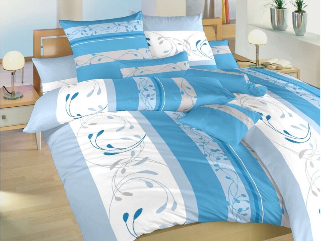 Saténové povlečení Bluemoon modrý v kombinaci modré, šedé a bílé z jemné 100% bavlny přináší svěží vzhled a pohodlný spánek. Rozměr povlečení je 140x200, 70x90 cm.