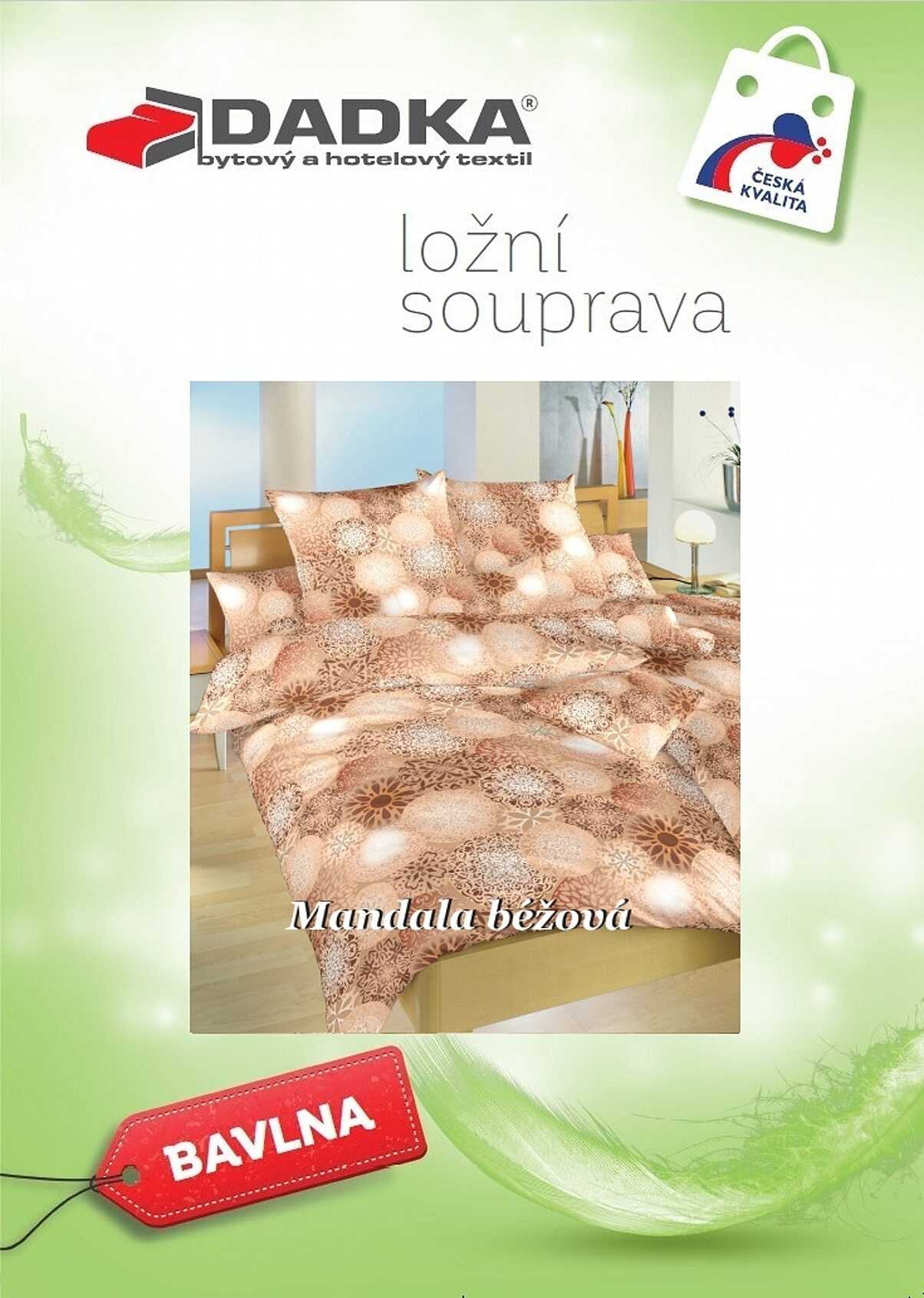 Stylové ložní prádlo Mandala béžová přináší do vaší ložnice harmonii a pocit rovnováhy. Vzor složený z kruhových mandalových motivů v odstínech béžové, hnědé a bílé působí jemně, elegantně a uklidňujícím dojmem. Tento decentní design doporučujeme kombinovat s prostěradly v medové, banánové, nugátové nebo světle hnědé barvě. Vyrobeno v České republice firmou DADKA VRACOV.
