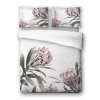 Luxusní povlečení Mikroflanel Botanika značky SLEEP WELL® přináší do ložnice svěžest přírody a maximální pohodlí. Bílý podklad s velkými květy protey v růžových a bílých tónech doplněný zelenými listy vytváří elegantní botanický vzhled.