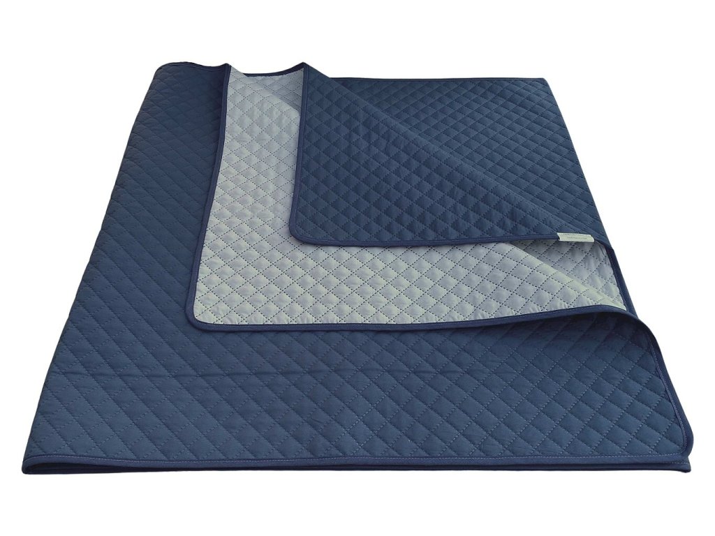 Dekorační oboustranný přehoz na postel. Rozměr na jednolůžko 135x245 cm. Barva tmavě modrá/světle šedá.