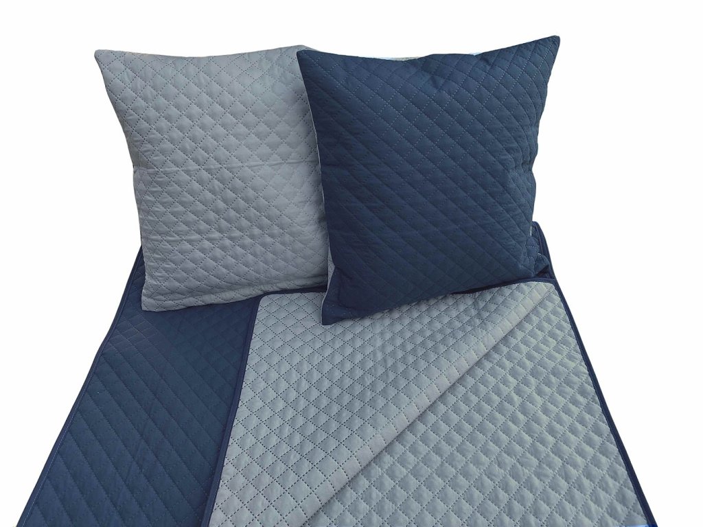 Dekorační oboustranný přehoz na postel. Rozměr na jednolůžko 235x275 cm. Barva tmavě modrá/světle šedá.