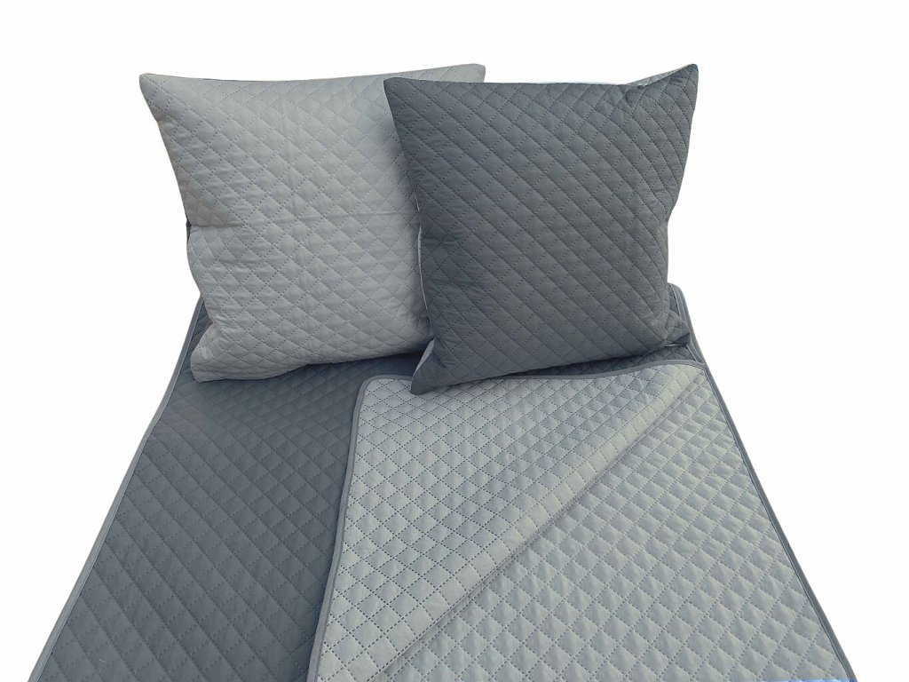Dekorační oboustranný přehoz na postel. Rozměr na jednolůžko 135x245 cm. Barva světle šedá/tmavě šedá.