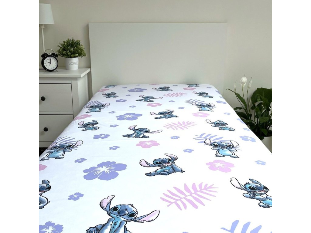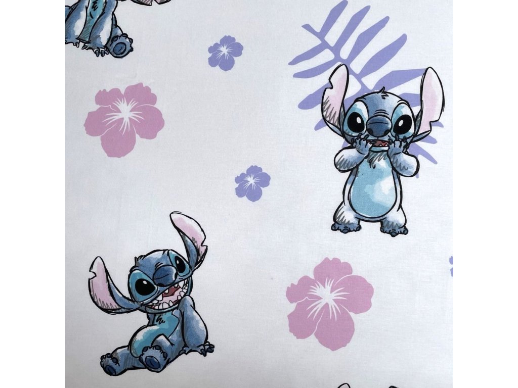 Prostěradlo je zdobeno veselými obrázky Lilo a Stitch, které přinášejí do pokoje hravost a radost.