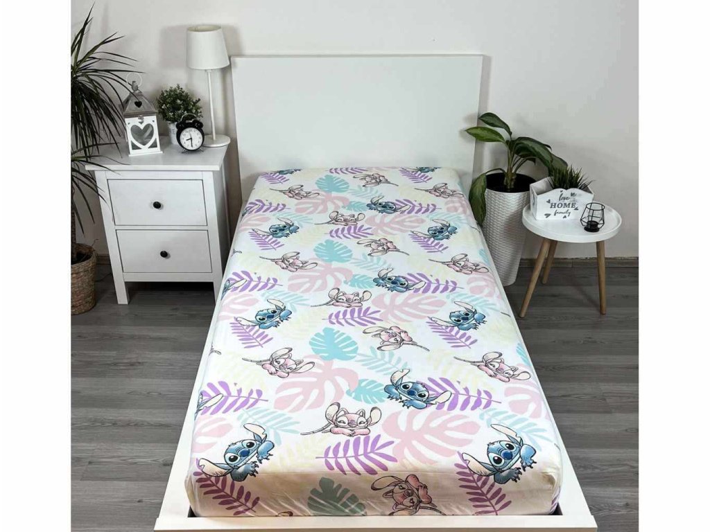Ideální doplněk k povlečení Lilo and Stitch – prostěradlo „Leaves“ vnese do dětského pokoje pohodlí a kouzlo tropických dobrodružství!