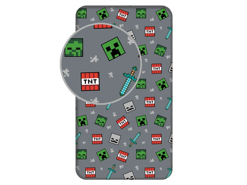 Napínací prostěradlo Minecraft We Got This s motivy Creeperů, TNT a mečů na šedém podkladu. Rozměr 90×200×25 cm, 100% bavlna, ideální doplněk k Minecraft povlečení. Rozměr je 90x200x25 cm.