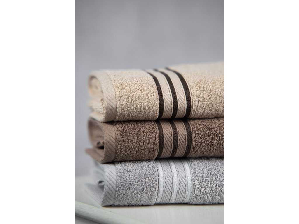Ručník RELAX je ztělesněním pohodlí a praktičnosti. Díky vysoké gramáži 575 g/m² je mimořádně hebký a zároveň velmi savý, takže vám poskytne maximální komfort po každém koupání. Světle šedá barva působí přirozeně a snadno zapadne do jakéhokoli interiéru. Dekorativní pruhy dodávají ručníku elegantní vzhled, který působí moderně i v klasické koupelně.