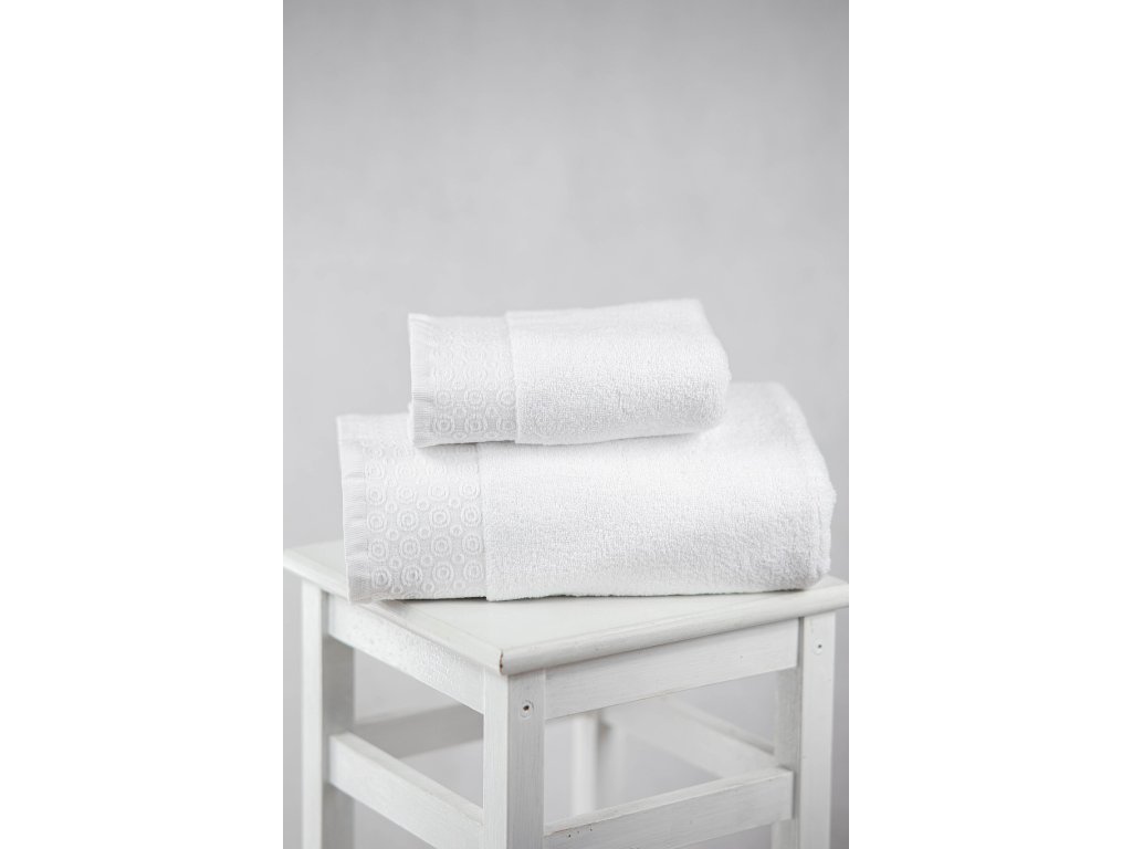 Bílý ručník s vysokou gramáží 550 g/m² potěší hebkostí, výbornou savostí a decentním dekorem. Elegantní doplněk pro každodenní použití i vkusně zařízenou koupelnu.