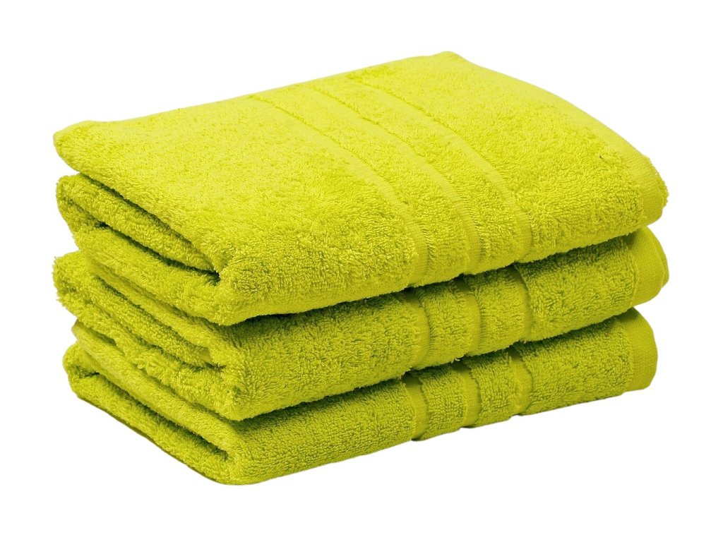 Pistáciově zelený froté ručník z kvalitní 100% bavlny s gramáží 500 g/m². Hebký, savý a elegantní ručník s jemnou třípruhovou bordurou – pro svěží a přirozený vzhled koupelny.
