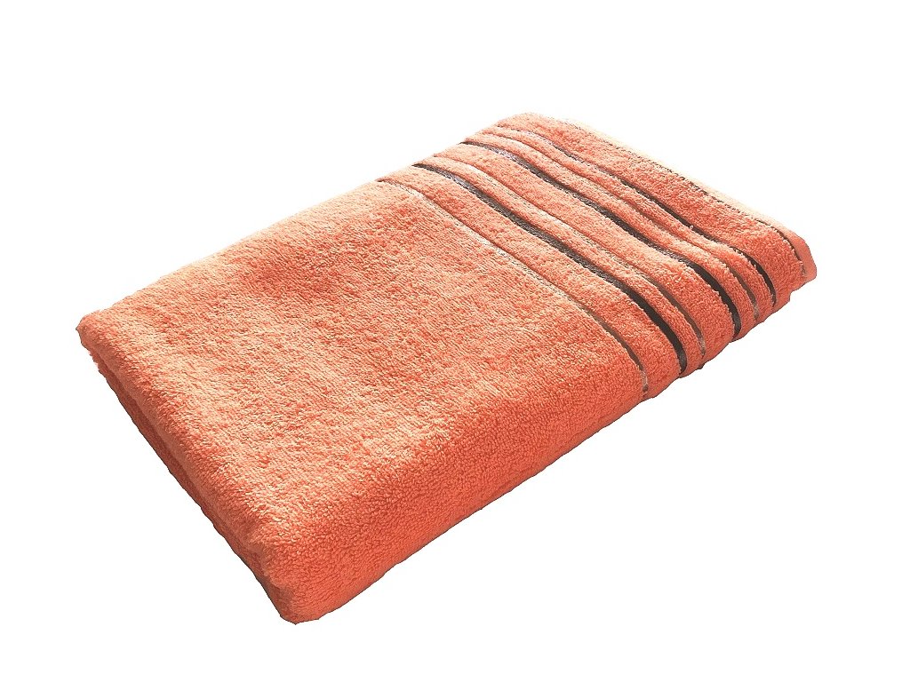 Lososový froté ručník Zara z kvalitní bavlny s gramáží 450 g/m². Hebký, savý a stálobarevný ručník se zdobnou bordurou v jemném a optimistickém odstínu pro každodenní použití.
