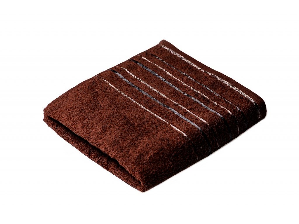 Tmavě hnědý froté ručník Zara z kvalitní bavlny s gramáží 450 g/m². Hebký, savý a stálobarevný ručník se zdobnou bordurou v přírodním odstínu vhodný pro každodenní použití.