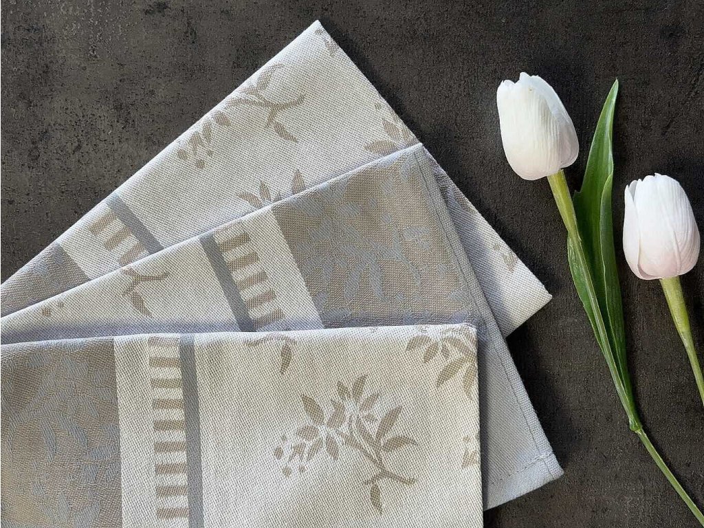 Sada tří bavlněných žakárový utěrek - extra savé se vzorem květin v šedé a béžové barvě. Rozměr utěrek je 3x 50x70 cm.