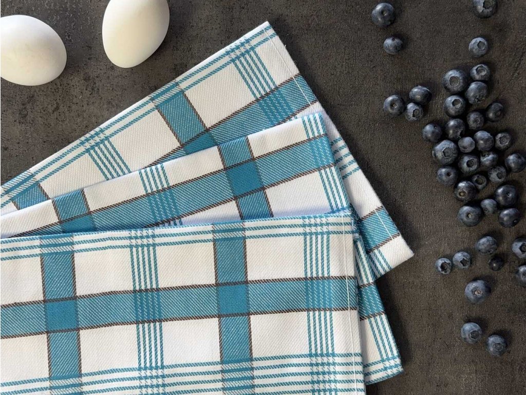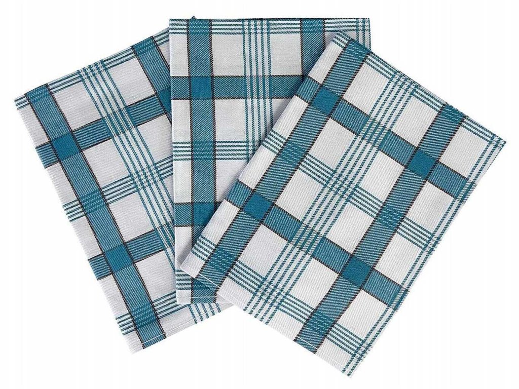 Sada tří bavlněných žakárový utěrek - extra savé. Vzor káro modré.