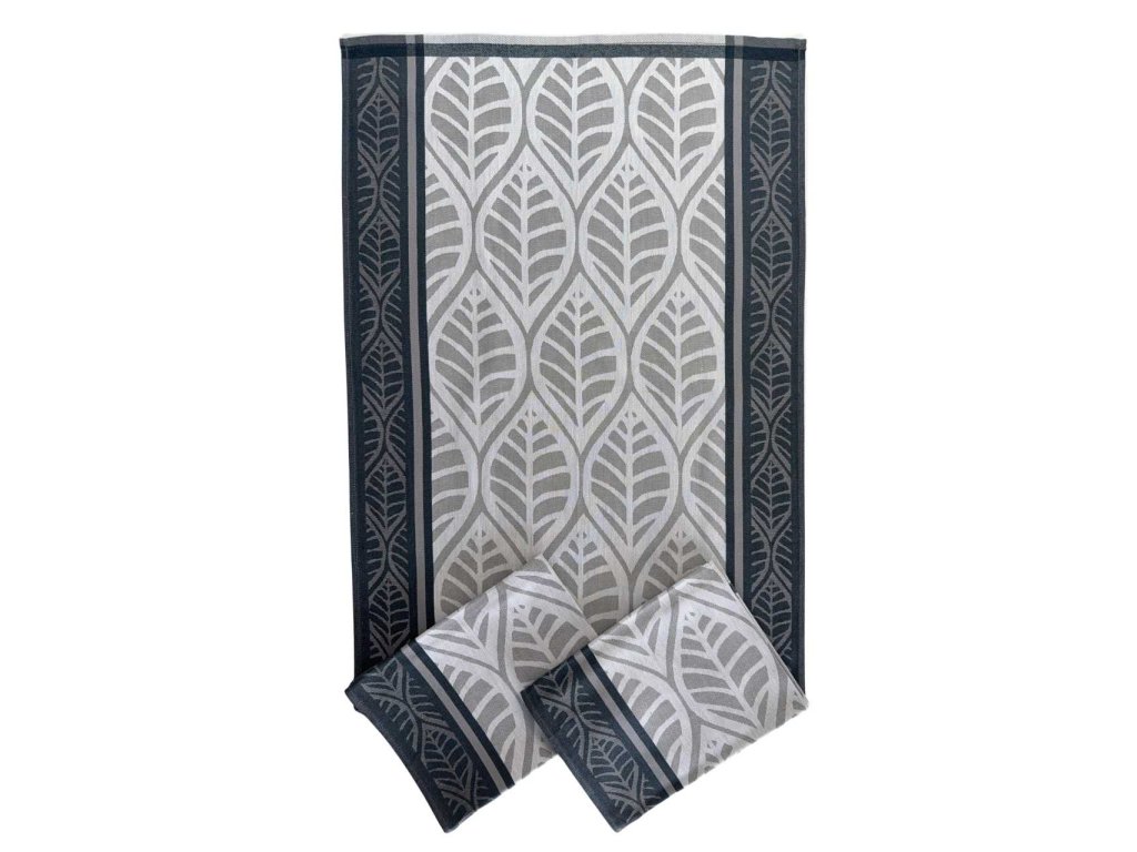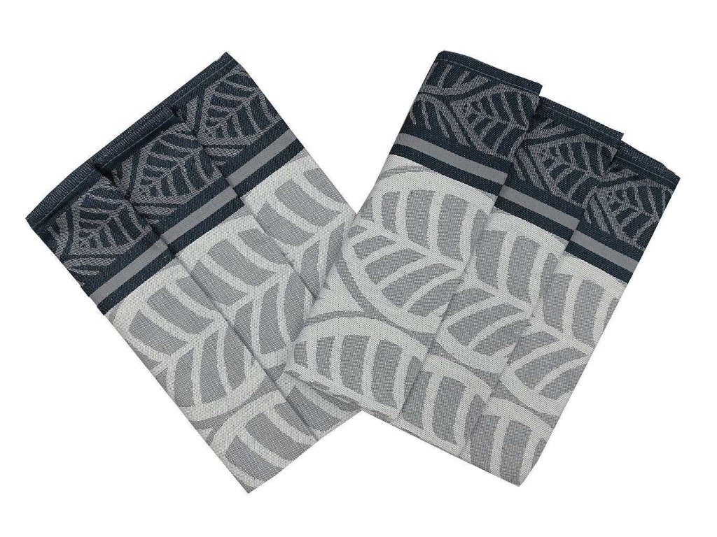 Sada tří bavlněných žakárový utěrek - extra savé. Vzor listy šedé.