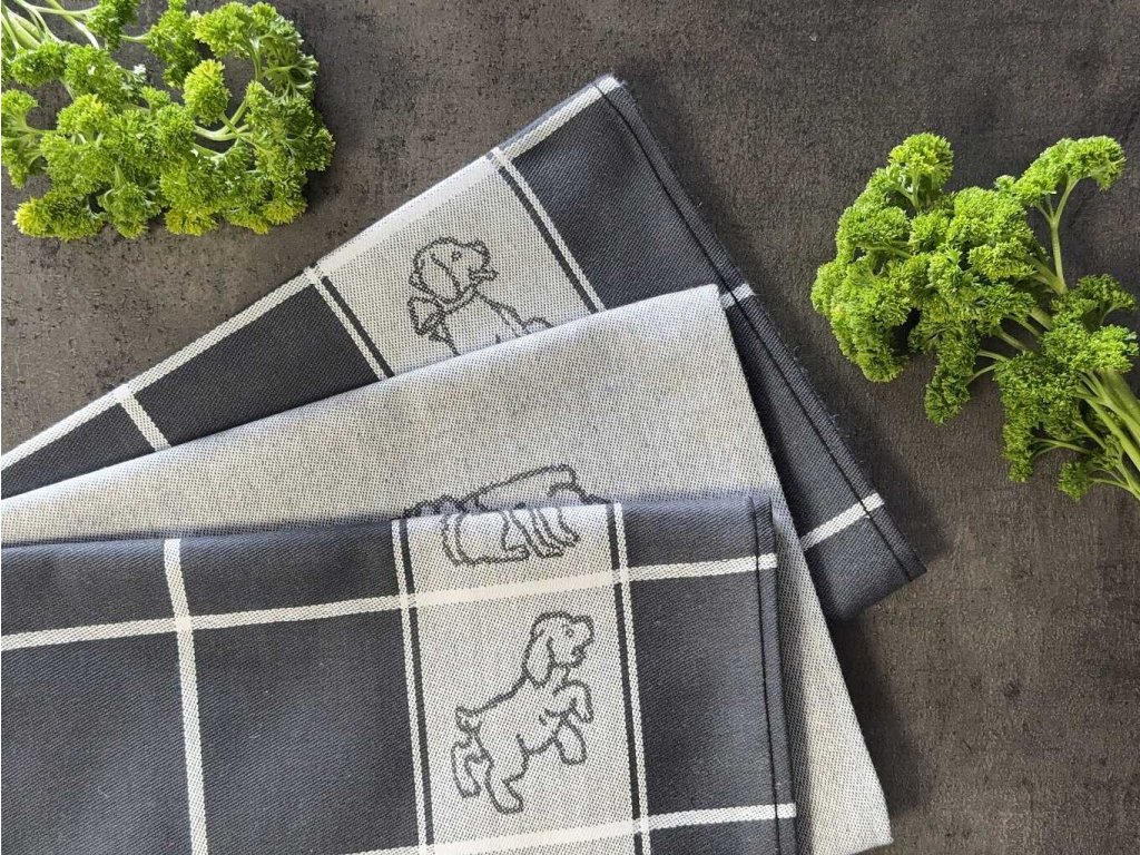Sada tří bavlněných žakárový utěrek - extra savé. Rozměr utěrek je 3x 50x70 cm. Motiv pejsků.