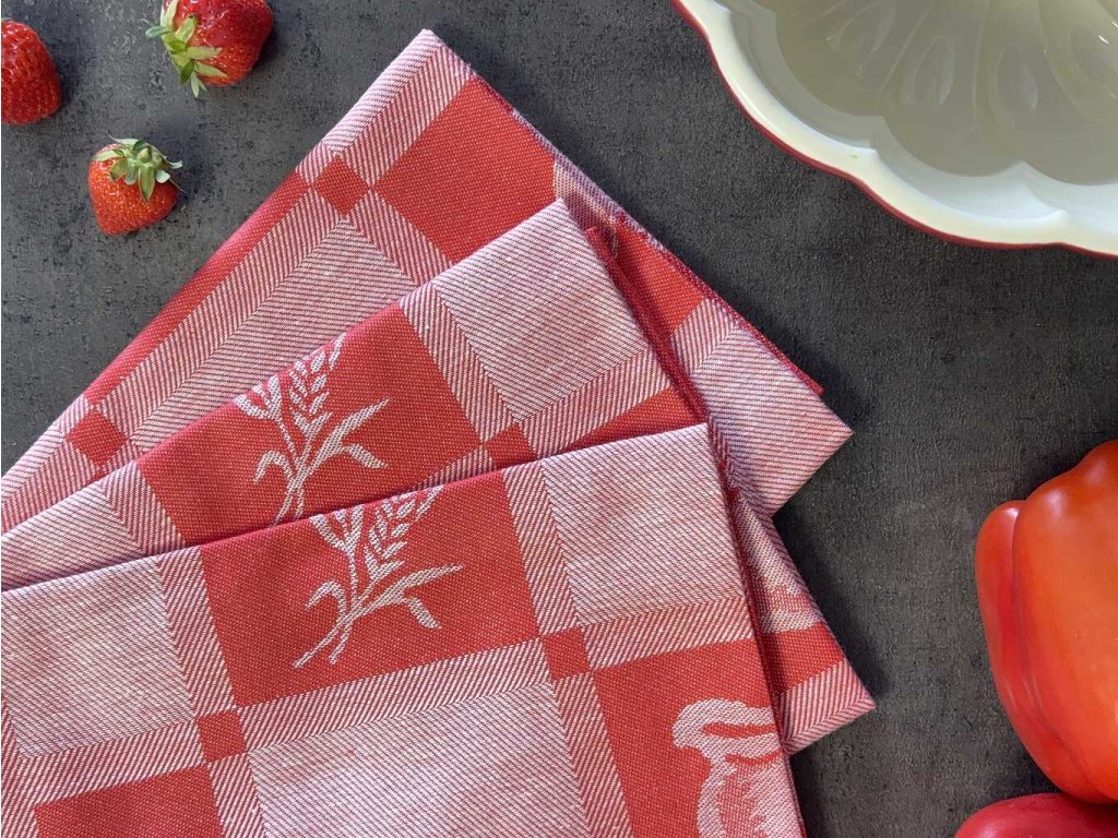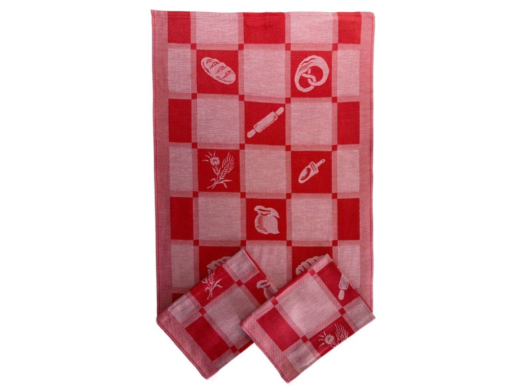 Sada tří bavlněných žakárový utěrek - extra savé laděné do červené barvy. Pekařská červená. Rozměr utěrek je 3x 50x70 cm.