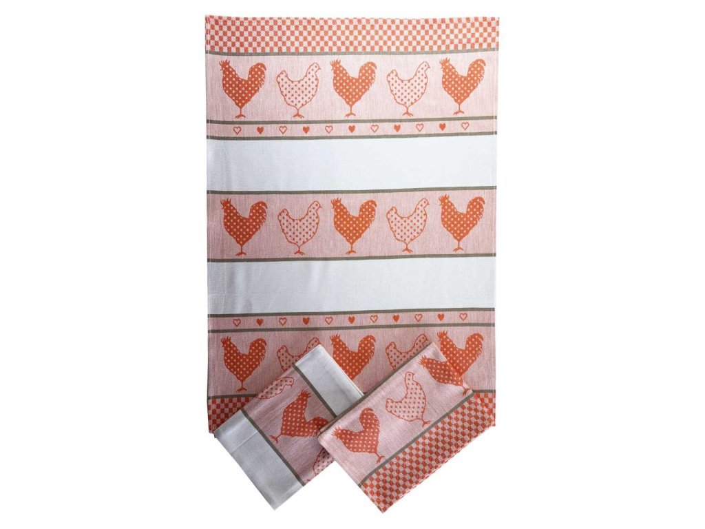 Sada tří bavlněných žakárový utěrek - extra savé. Rozměr utěrek je 3x 50x70 cm. Motiv slepiček v oranžové barvě.