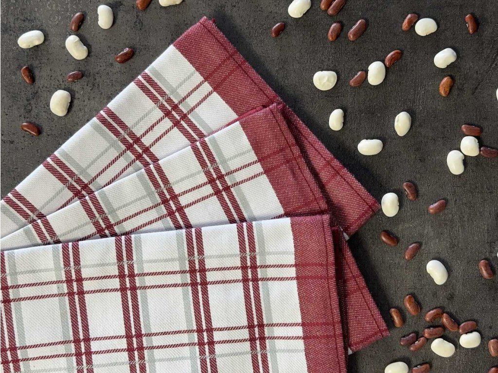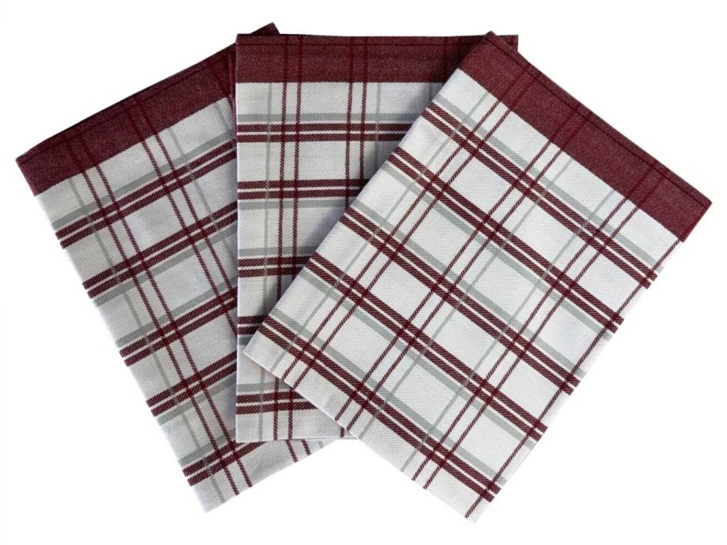 Sada tří bavlněných žakárový utěrek - extra savé laděné do bordó barvy. Tradiční káro bordó. Rozměr utěrek je 3x 50x70 cm.