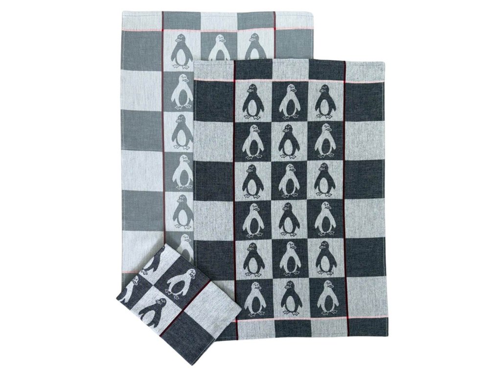 Sada tří bavlněných žakárový utěrek - extra savé. Vzor tučňáci.