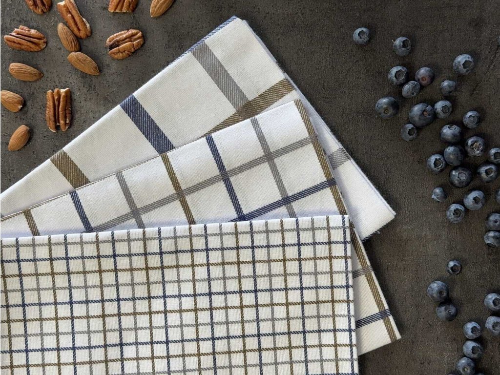 Sada tří bavlněných žakárový utěrek - extra savé. Rozměr utěrek je 3x 50x70 cm. Motiv modré káro.
