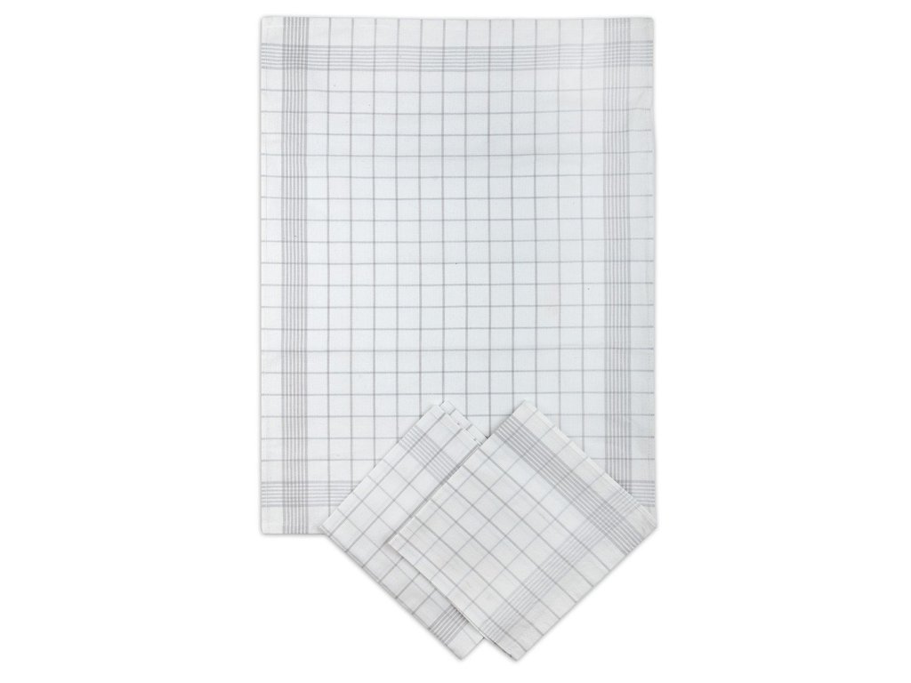Sada tří bavlněných utěrek s kostkami - kombinace barev bílá a šedá. Rozměr utěrek je 3x 50x70 cm.