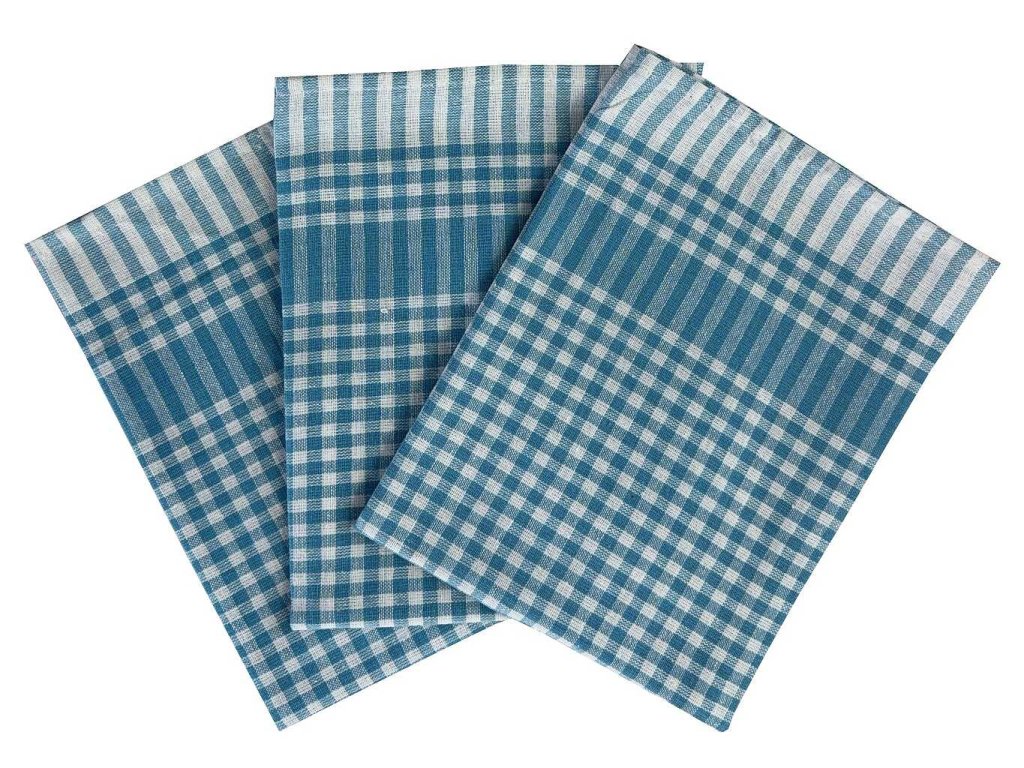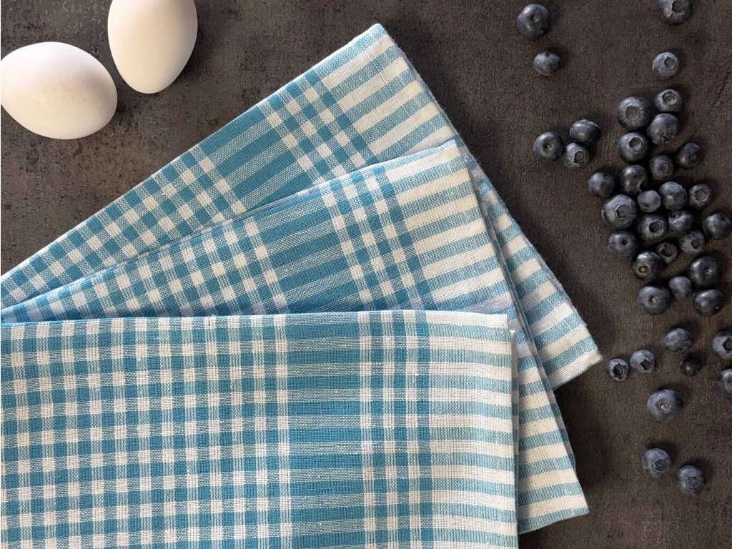 Sada tří kostičkovaných utěrek. Rozměr utěrek je 3x 45x65 cm. Barva utěrek je tyrkysovobílá.