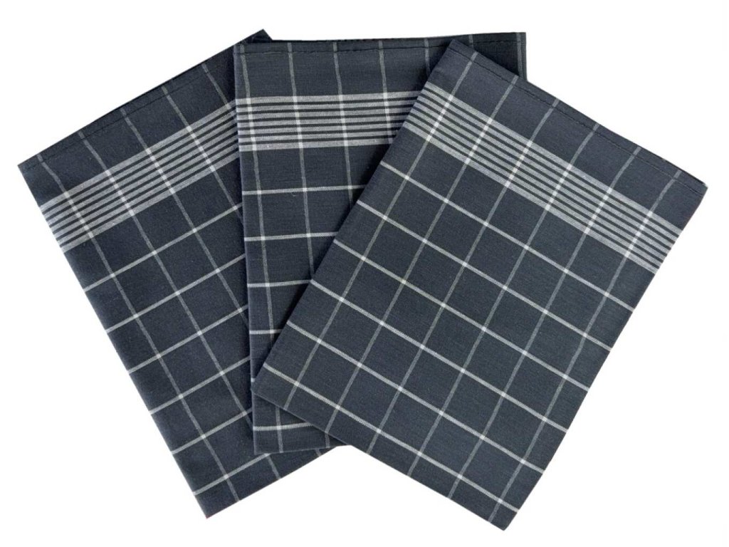 Sada tří bavlněných utěrek s kostkami - kombinace barev tmavě šedá a bílá. Rozměr utěrek je 3x 50x70 cm.