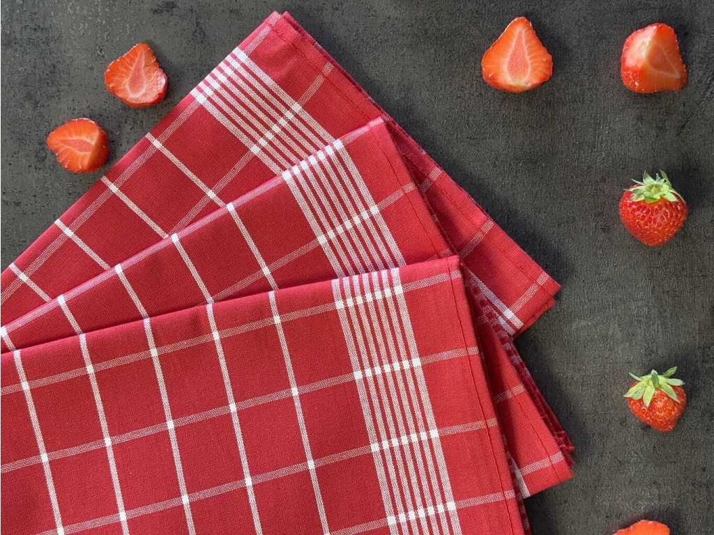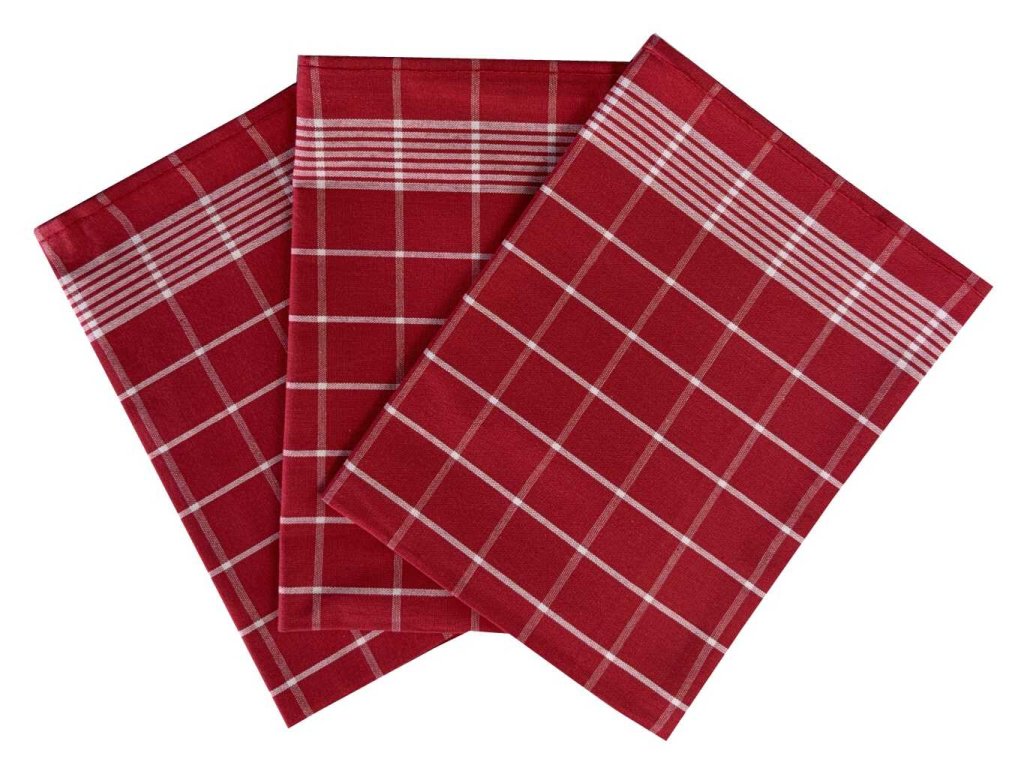 Sada tří bavlněných utěrek s kostkami - kombinace barev vínová a bílá. Rozměr: 50x70 cm.