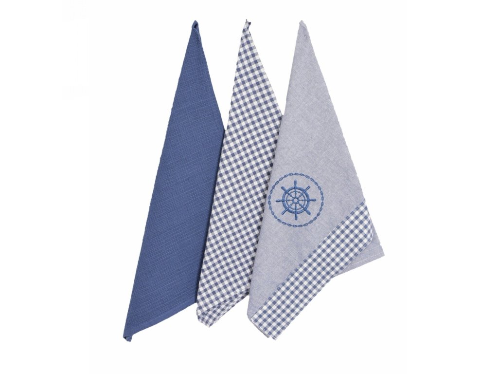 Utěrky Káro a kruh modrá 45x70 cm 3 ks