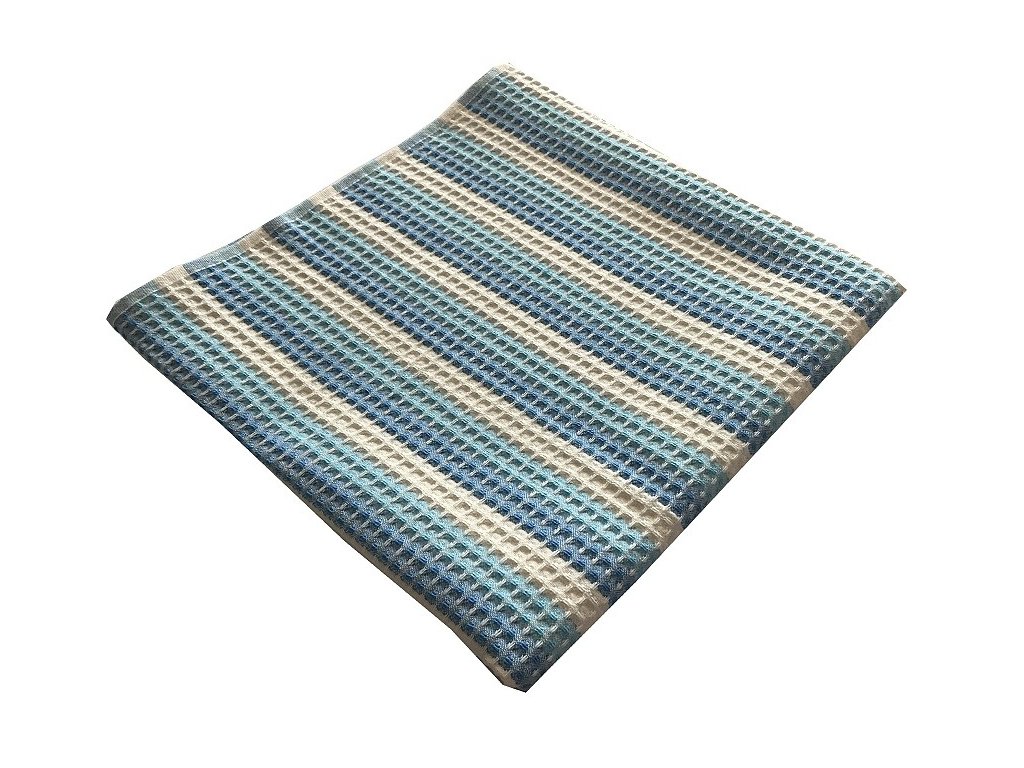Modrý vaflový ručník ze 100% bavlny s gramáží 240 g/m². Lehký, rychleschnoucí a stylový ručník s jemnou strukturou – ideální pro každodenní použití doma i na cestách.
