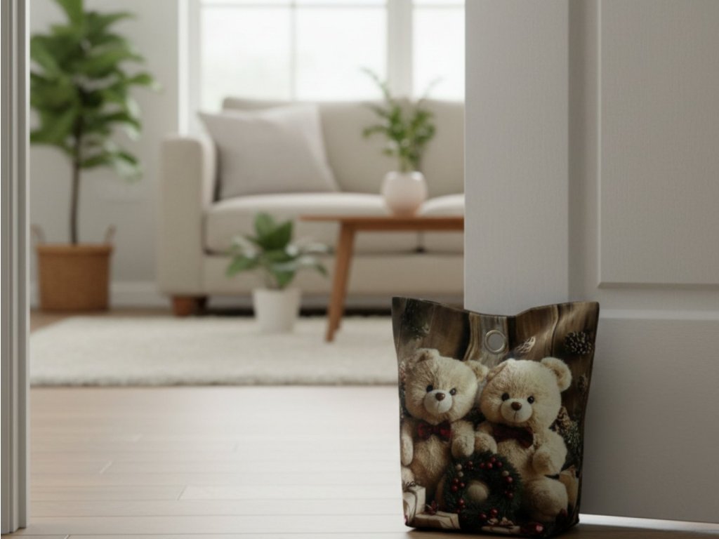 Roztomilá vánoční zarážka do dveří s motivem dvou medvídků v zimním oblečení. Skvěle doplní sváteční výzdobu a zároveň ochrání váš domov před průvanem. Ideální pro dětské pokoje i útulné interiéry.