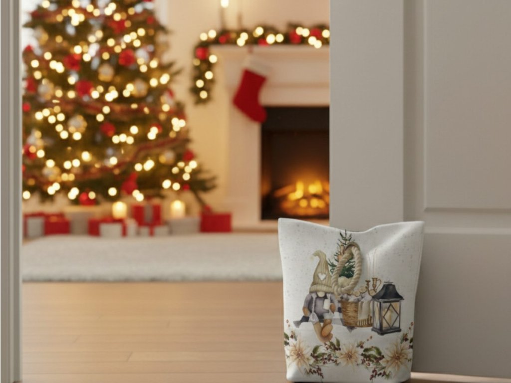 Originální vánoční zarážka do dveří s motivem skřítka držícího lucernu. Spojuje praktickou funkci s kouzelnou dekorací, která navodí sváteční atmosféru a ochrání váš domov před průvanem.
