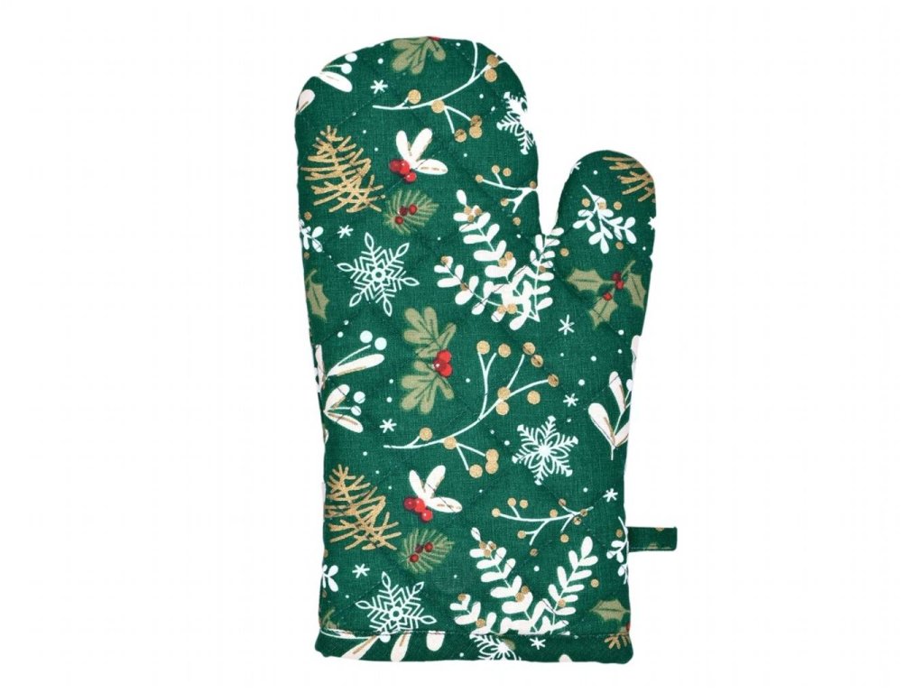Stylová vánoční chňapka s motivem větviček, šišek a bobulek je praktickým pomocníkem každé hospodyňky. Chrání před popálením a zároveň krásně doladí sváteční atmosféru v kuchyni.