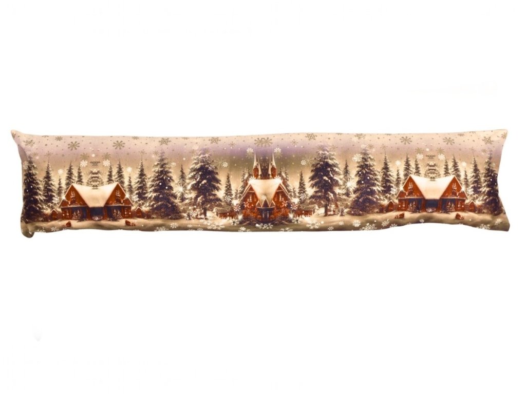 Vánoční dekorace s motivem zasněžené krajiny, rozměr 20×85 cm. Jednostranný potisk, zapínání na zip. Vyrobeno ze 100% polyesteru. Stylový doplněk pro zimní výzdobu oken a lavic.
